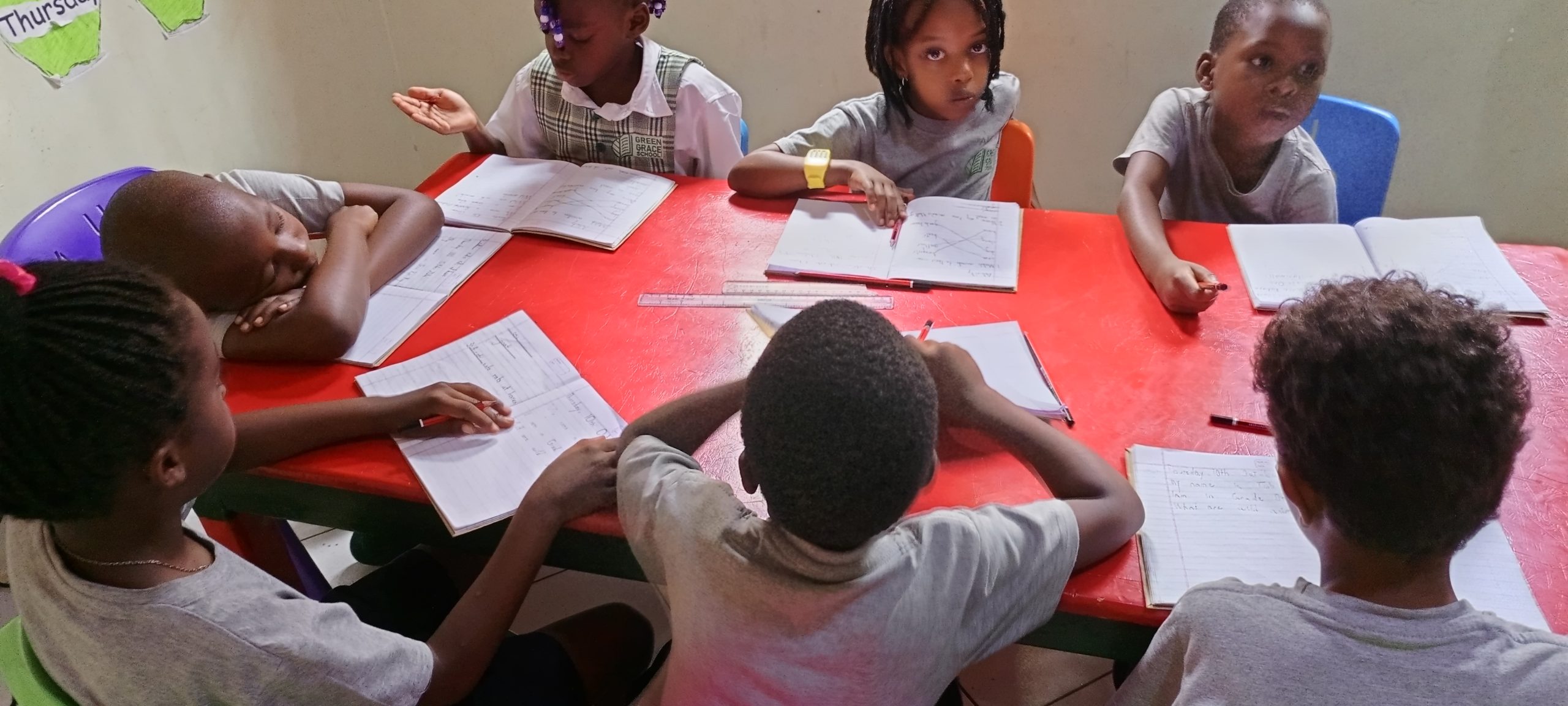 Students engage in reading Christian literature alongside their core academic lessons, blending spiritual and intellectual growth in pursuit of excellence.